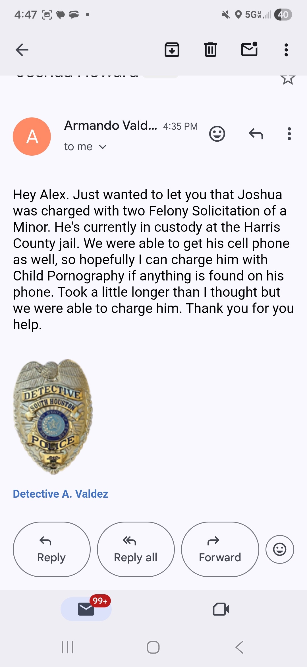 Joshua Howard, who was previously caught by OPP then caught by us in May, has been ARRESTED. Only our 2nd Harris County arrest.