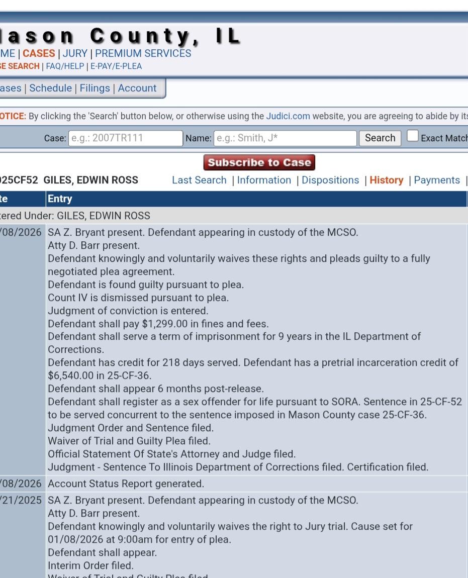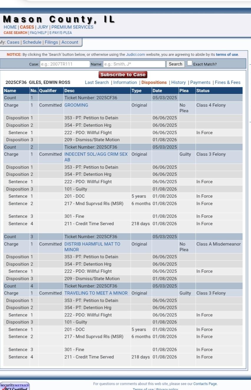 Edwin Giles, the elementary school janitor we csught with jidion in Illinois, has received 9 years in prison!