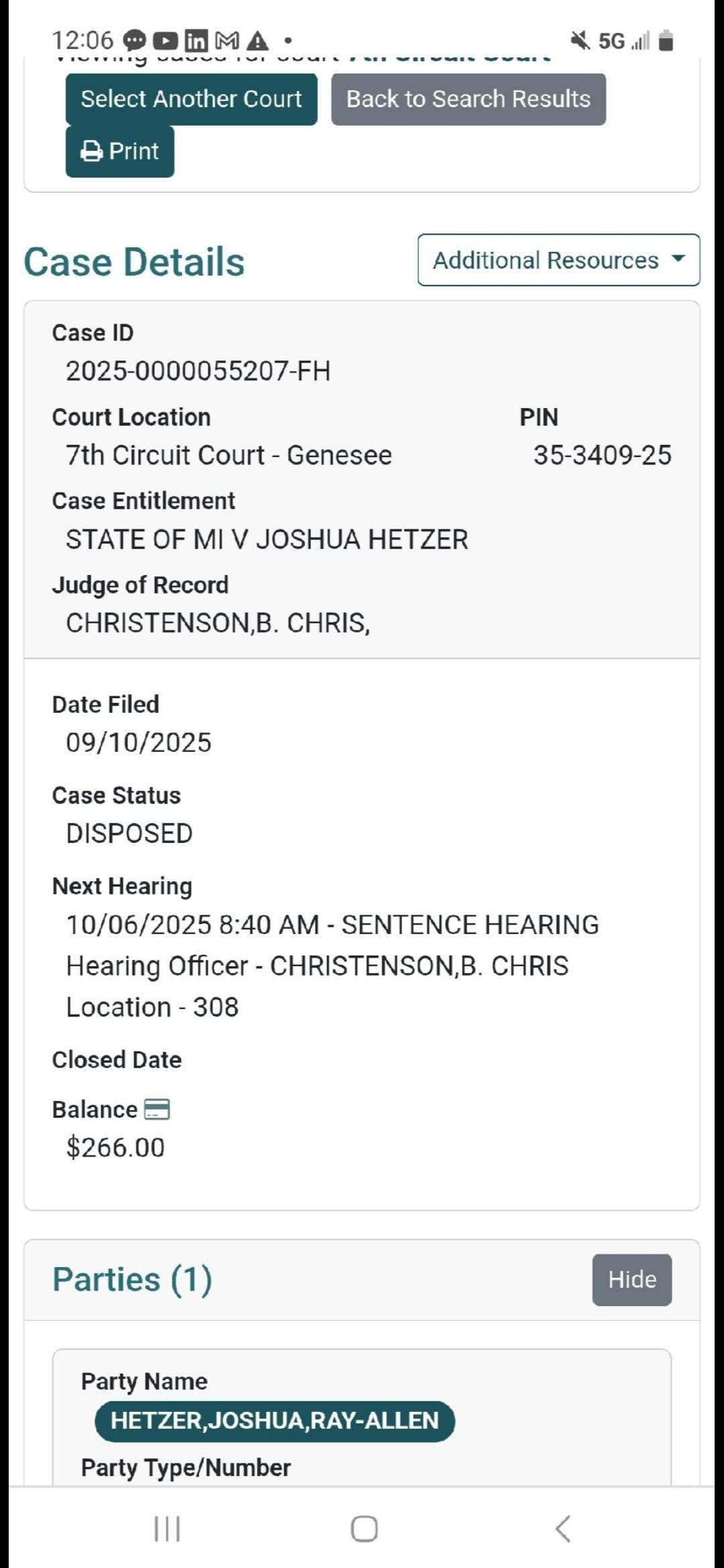 Josh Hetzer, who we caught in Michigan with Jidion this summer, has received 5 years probation.
