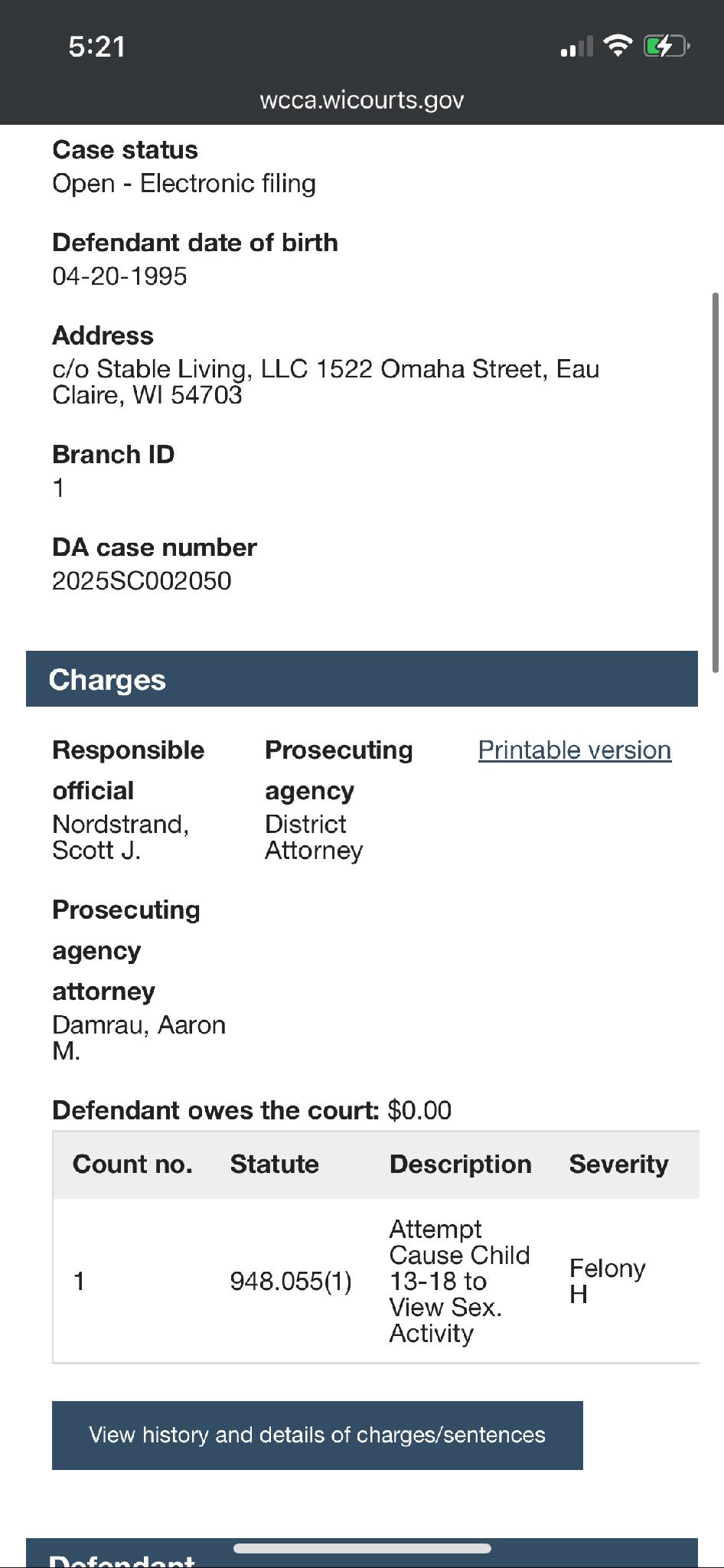 David Noyes, the 500 lb pred we caught in Wisconsin earlier this year, has been CHARGED!
