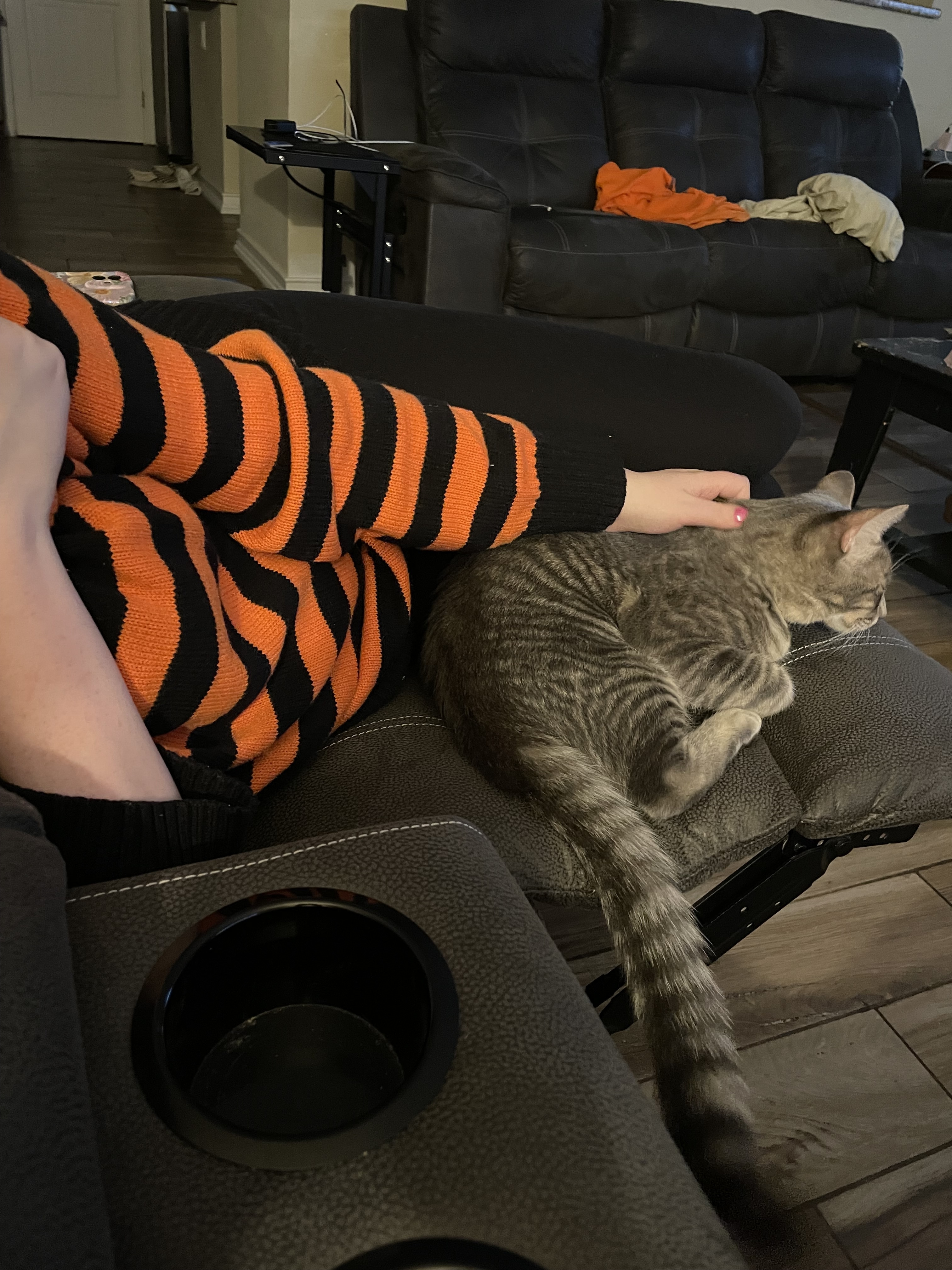 He cuddlin with his mama (my gf)