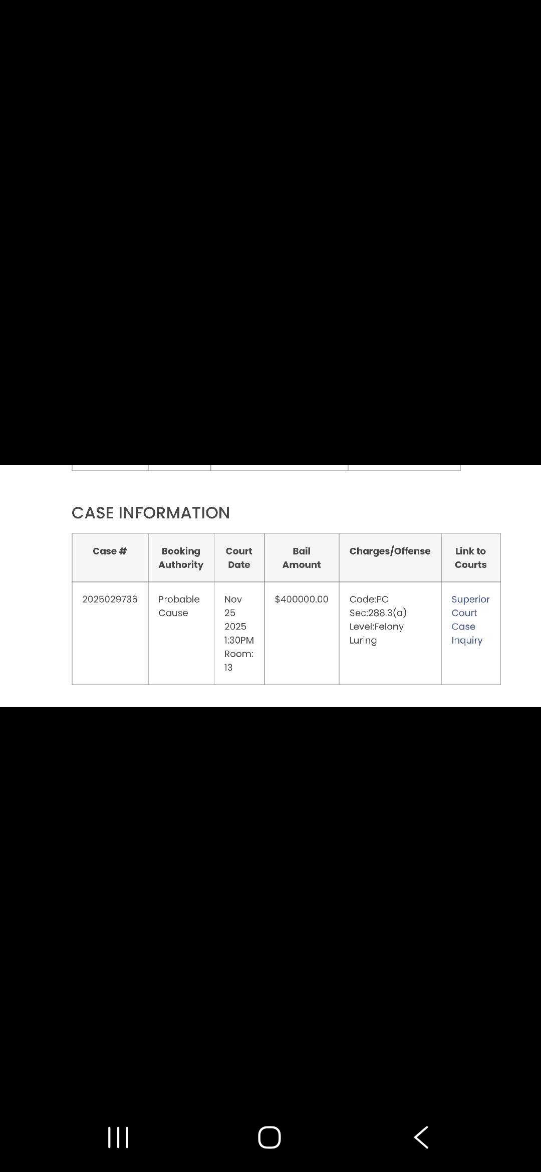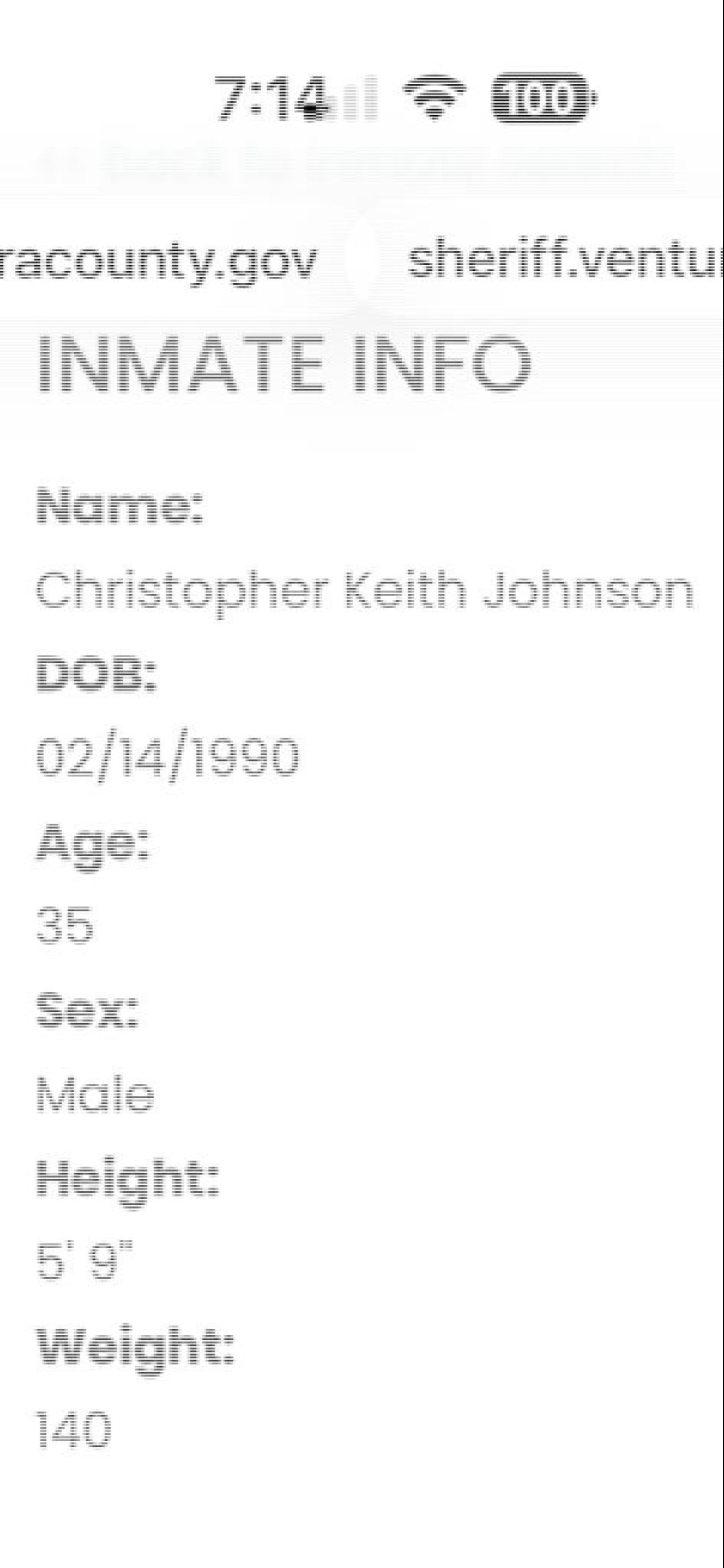 ARREST RECORD FOR LAST NIGHTS PEDO