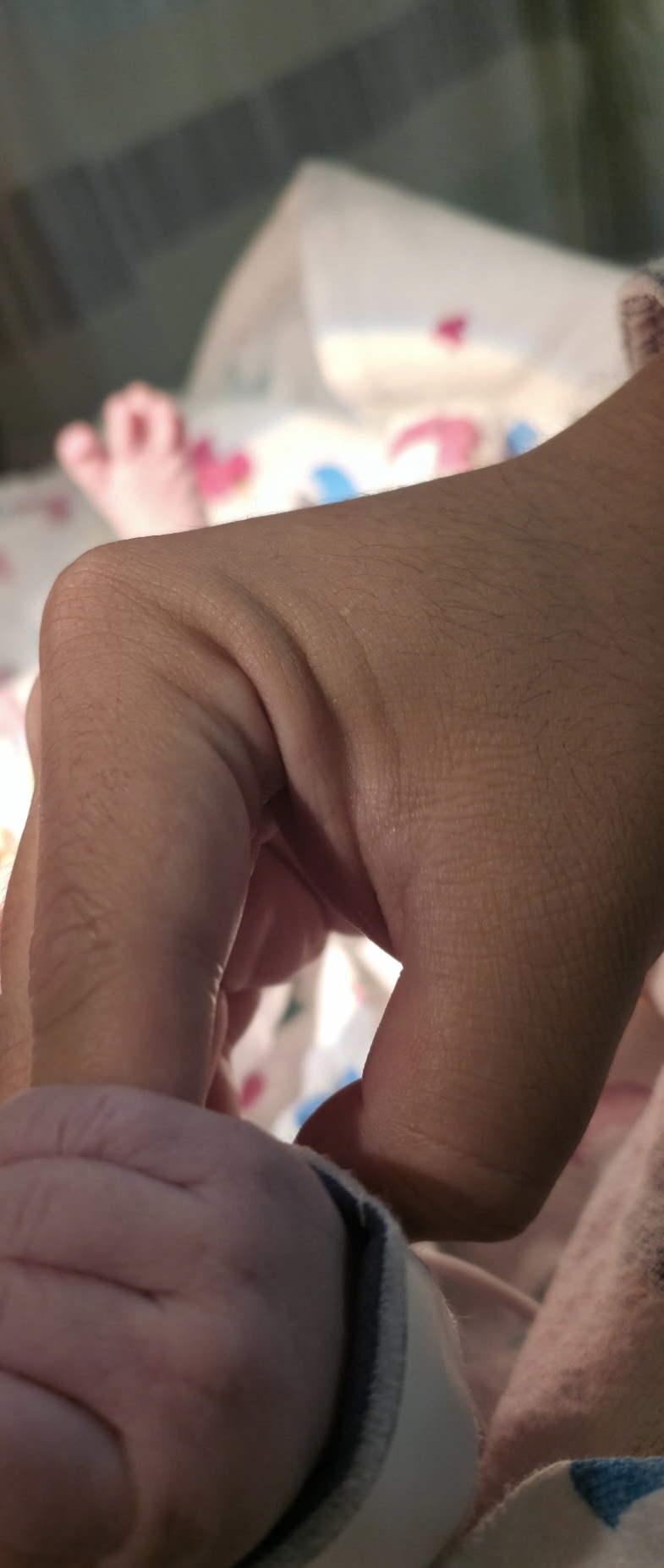 Obvi we won’t be posting her face (obvious reasons) but if anybody runs into the team when Pablo starts traveling again he’d be more than excited to share. In the meantime, this cute pic of her hand holding Pablo’s finger moments after she was born.