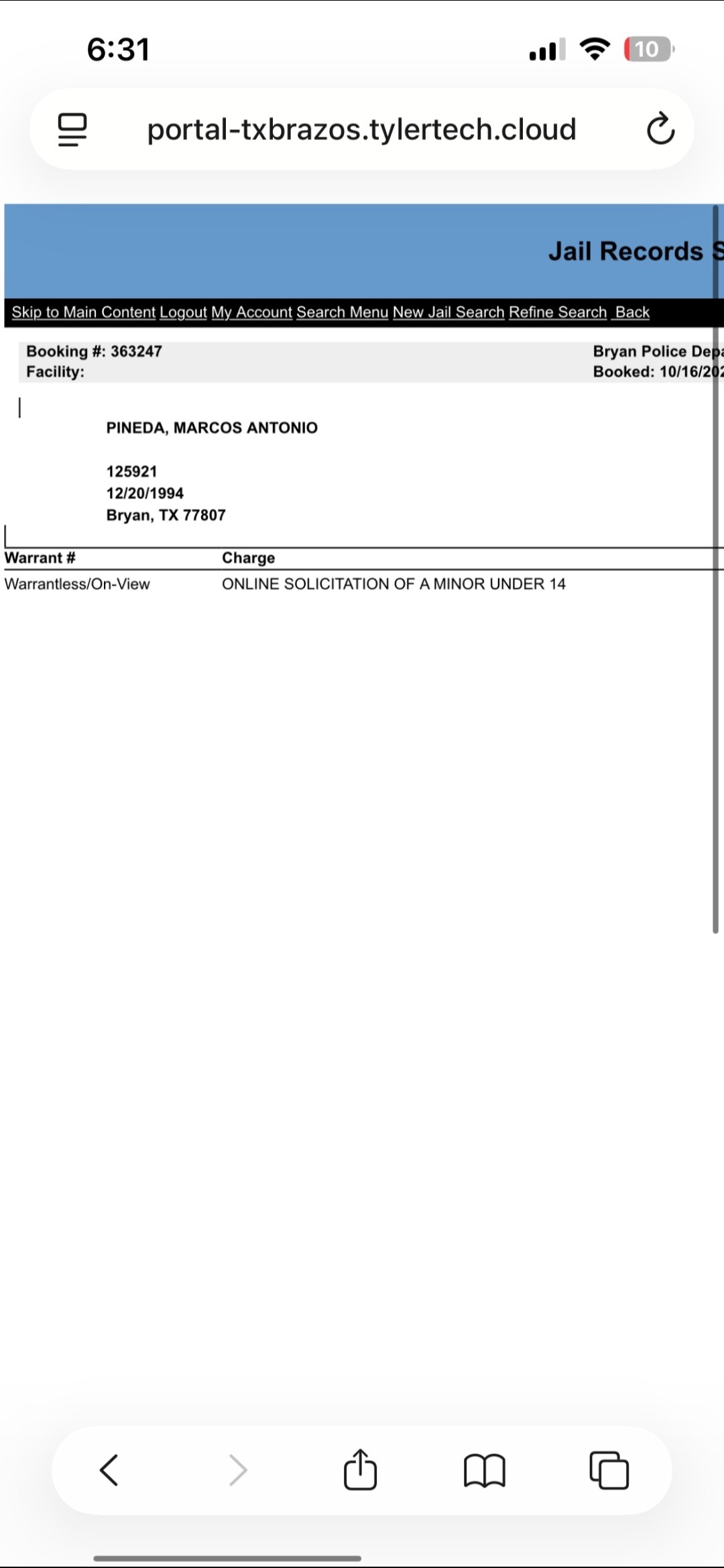 Armando Hernandez, the sex offender we caught last year in Pasadena, Texas.. who abused his own nephew, hae been sent back to prison to finish out his originial sentence due to his parole getting revoked after we caught him. He won't be out until 2030