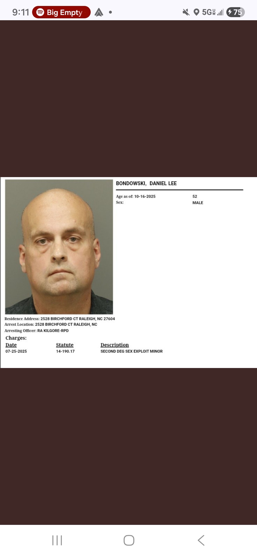 Daniel Bondowski, the pedo we caught in front of his wife in Raleigh, North Carolina this summer, has been ARRESTED!