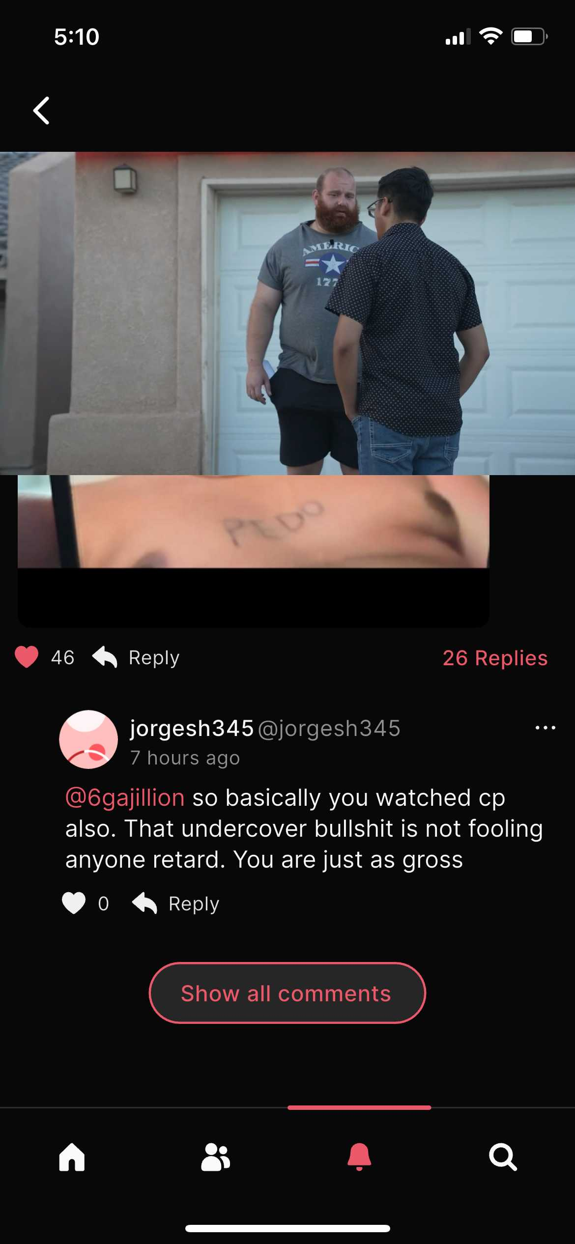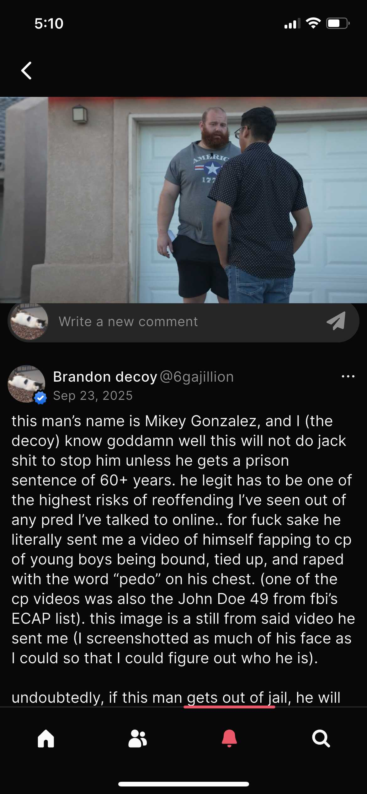 Yall remember when we caught Mikey Gonzalez in Yuma AZ and got him arrested, right? Lemme tell you, I found out who he was because of me screenshotting images of his face from a video of him watching cp—-and this commenter seems to think I’m a pedophile for that (even tho that was the only way I could’ve figured out his identity to have Alex confront him and lead to his arrest.