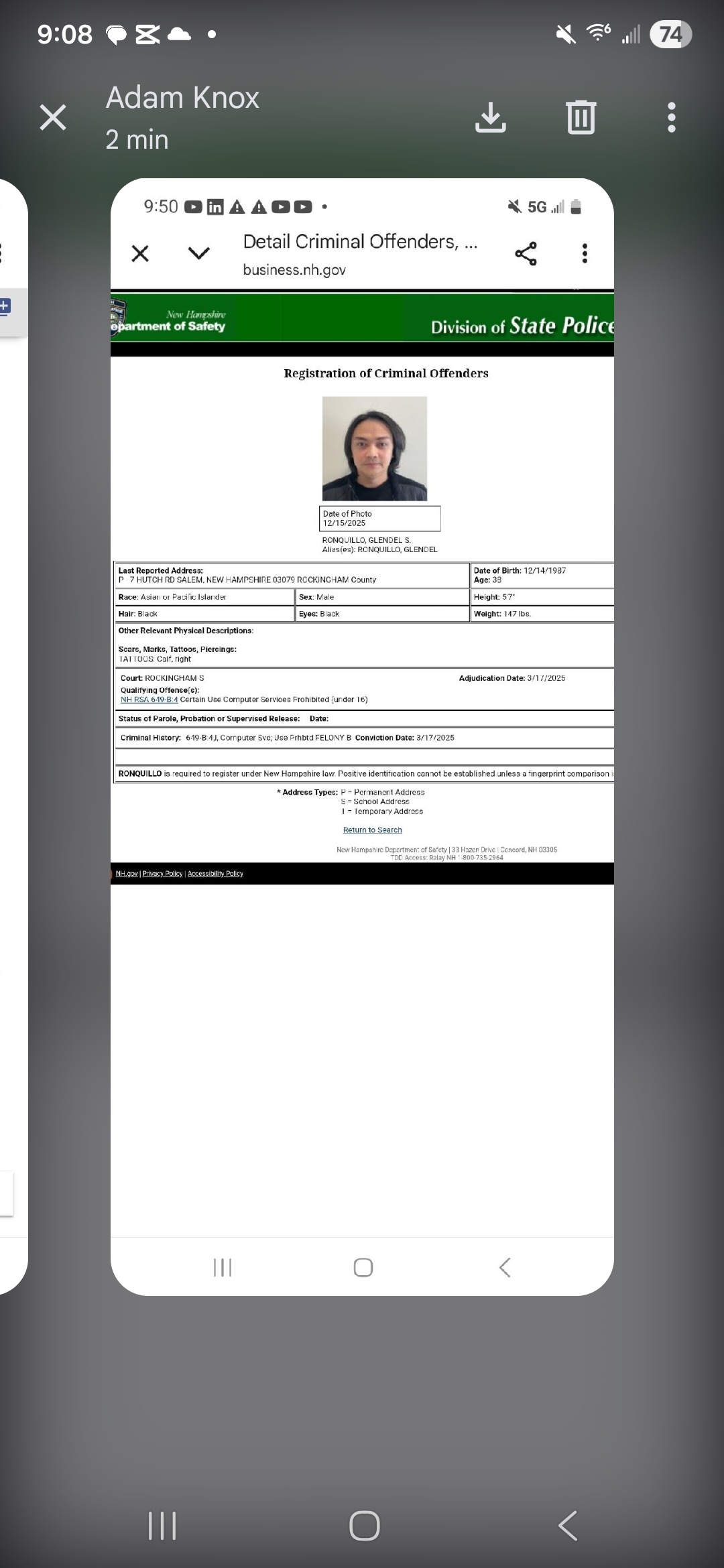 Almost a year late, but Devon Gilkey, aka FROGGAIR, a catch from april 2022, has been sentenced to 10 years probation, and is now a sex offender until 2044. His video here: https://rumble.com/v1jedns-slck-man-that-wanted-to-kldnap-and-make-giri-his-secks-siave-gets-disowned-.html