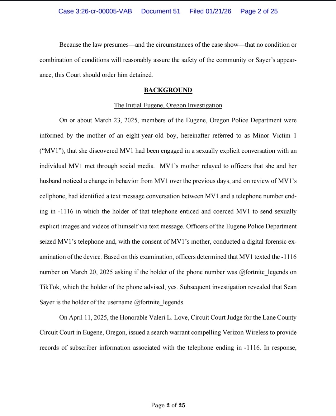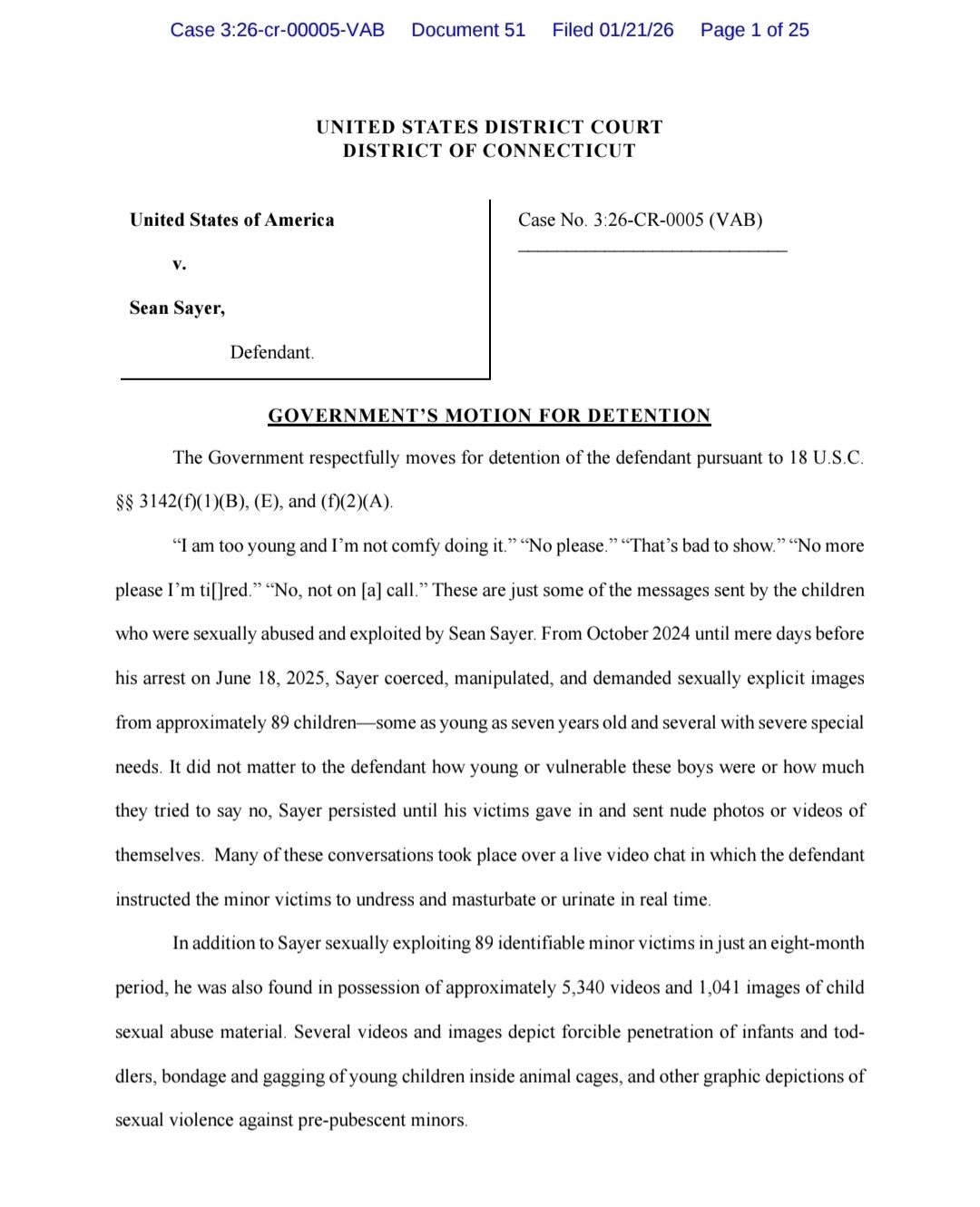 This is the federal government's motion for detention for the pred that Alex got earlier today. This is his open federal case, different than what Alex got him on.