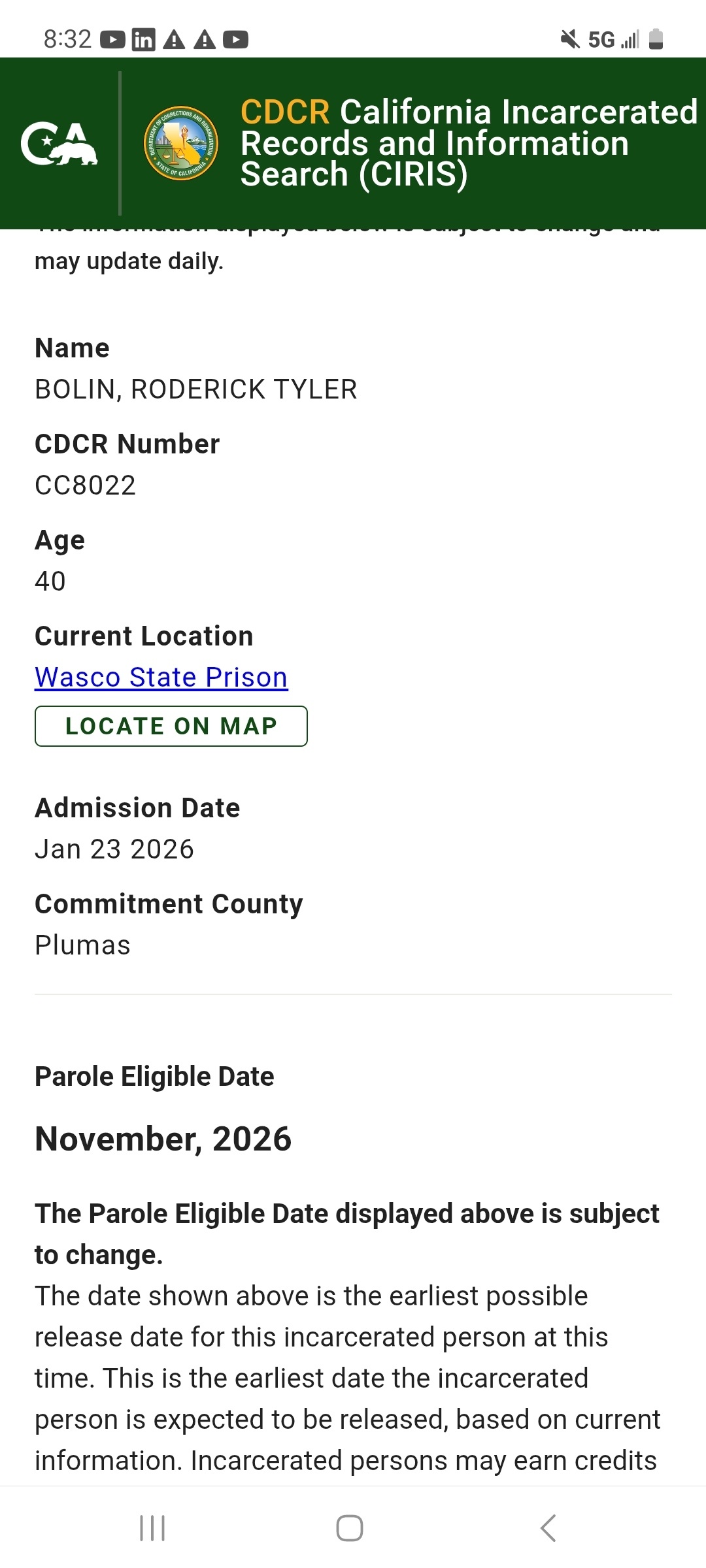 Roderick Bolin, who we went to trial for in November, has been SENTENCED.