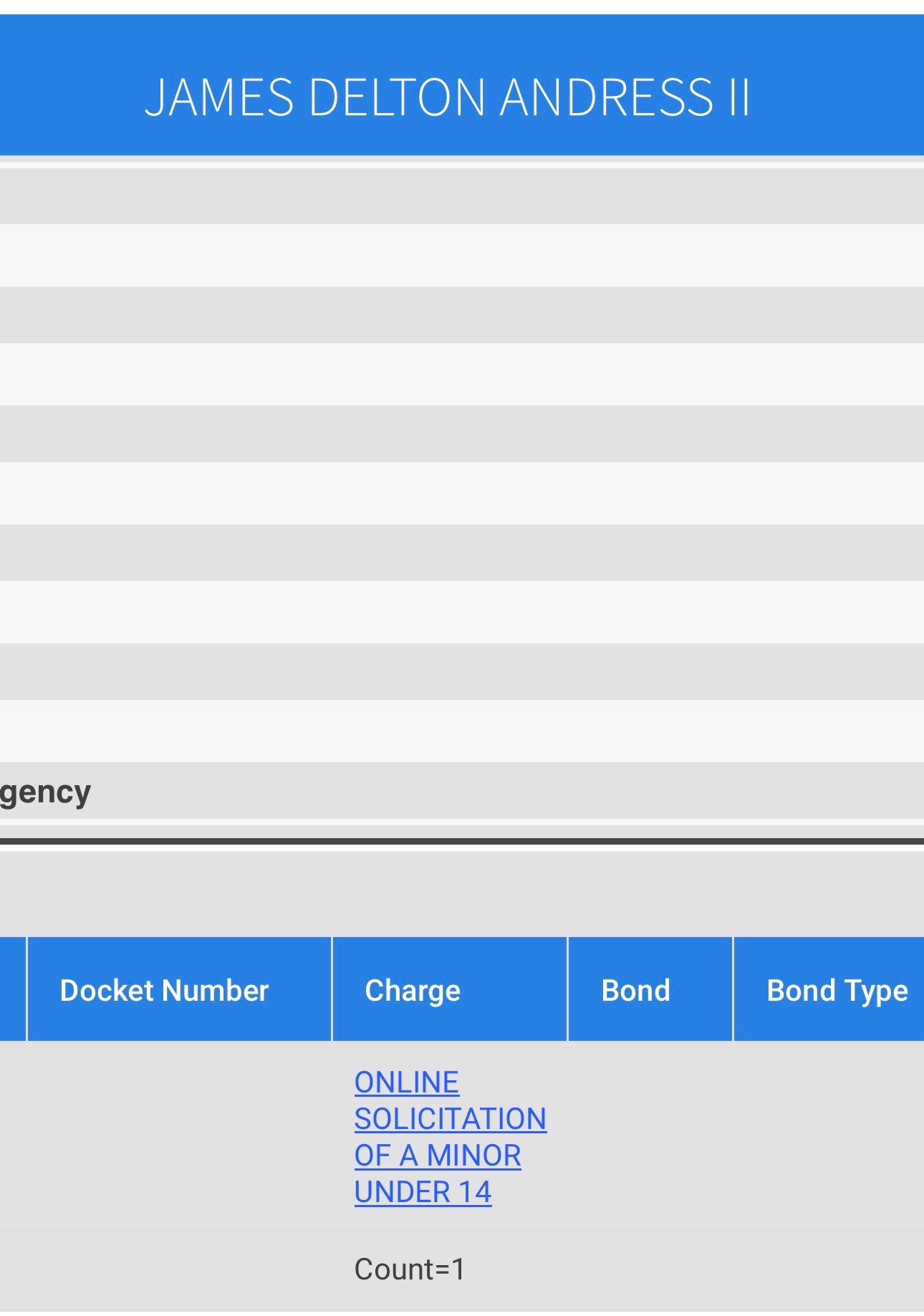 1 count of solicitation, 10 counts of beastiality (that he distributed)