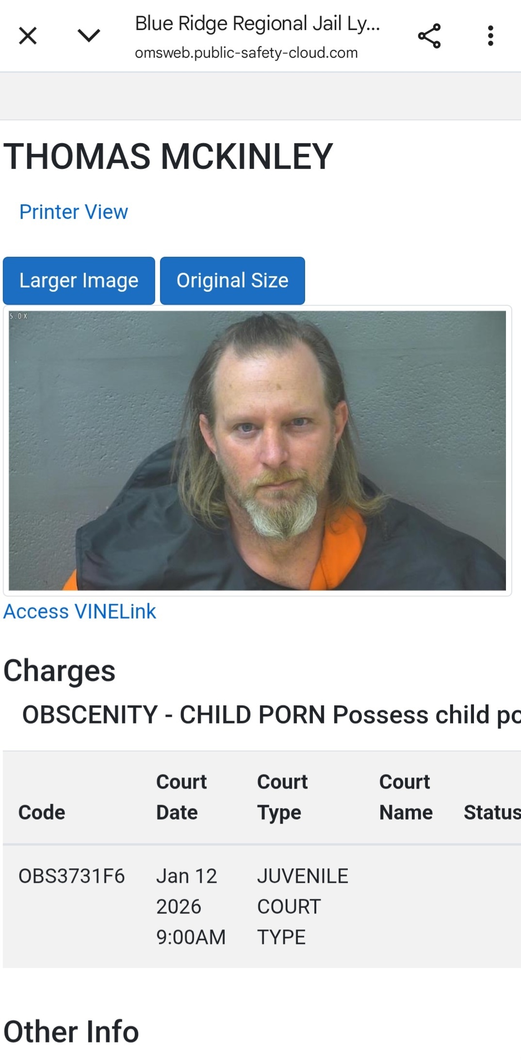 Charged with cp for now, bedford is passing the chats to chesterfield county to charge.