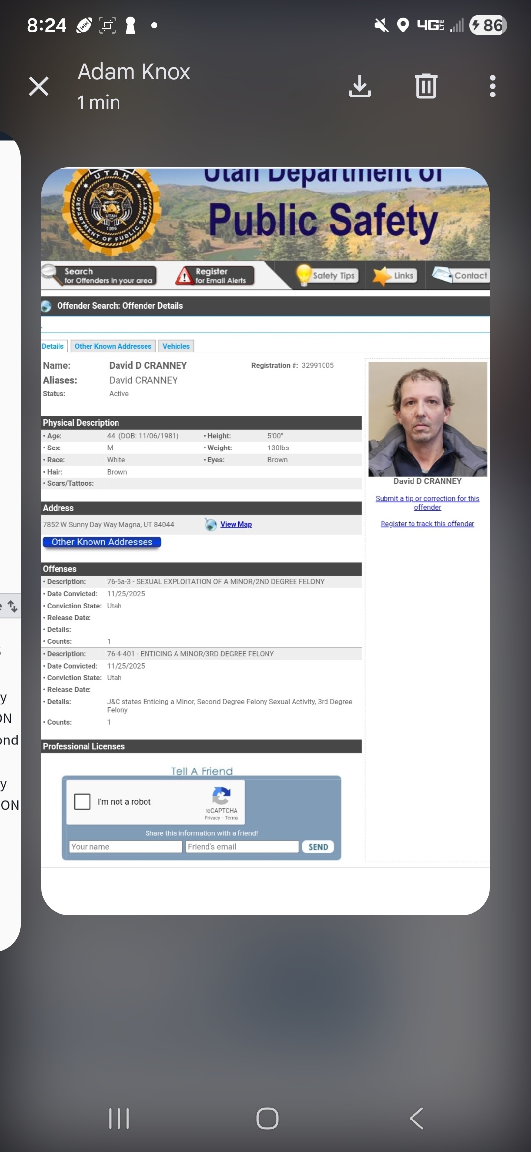 David Cranney, the pedo in utah we caught whos profile pic was cp.. has been convicted. Probation + having to register.