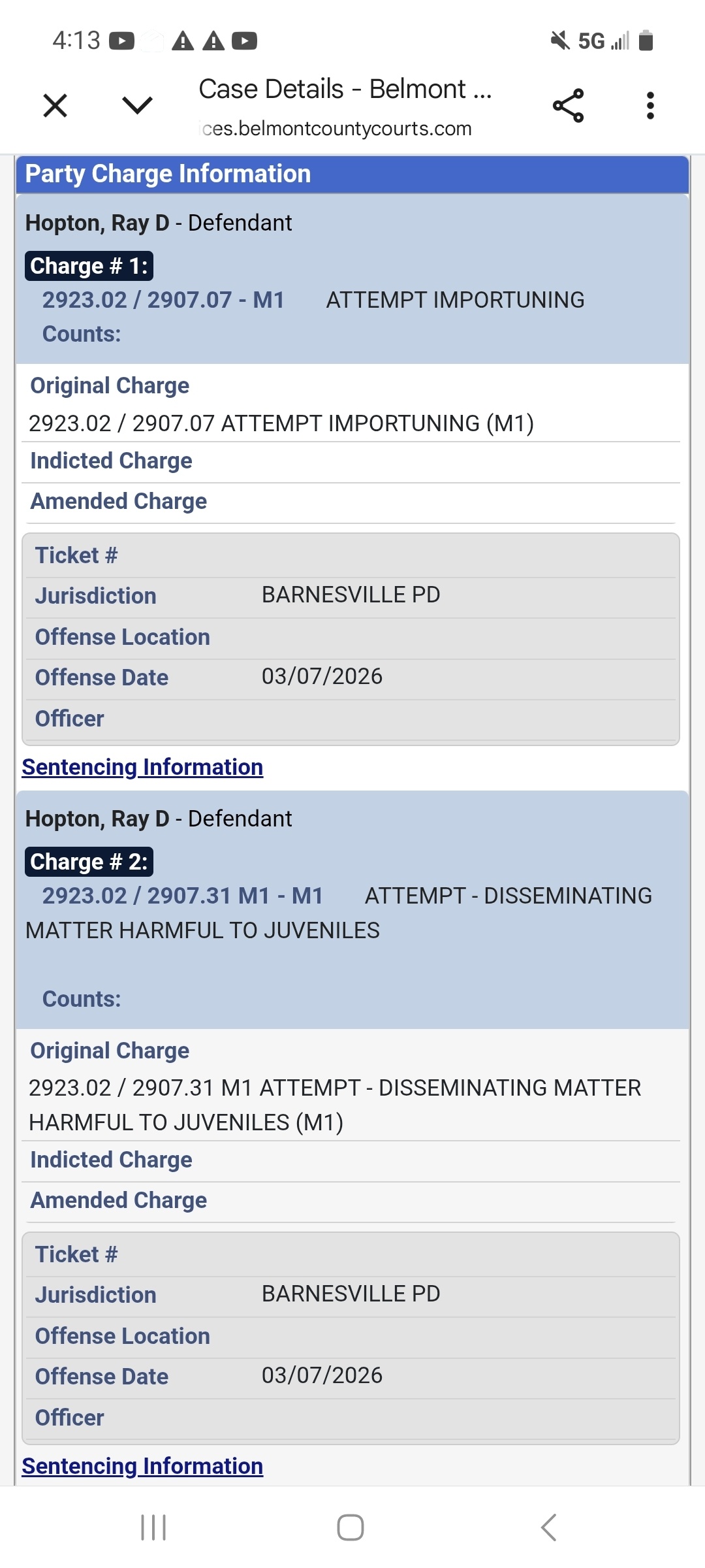 Ray Hopton, the slob pedo we caught in Ohio 2 weeks ago, has been charged. 2 misdemeanors for the chats.